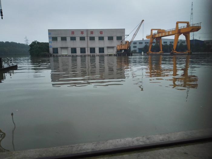 “運(yùn)河水位離碼頭最低處還有4公分!”每年老廠區(qū)是遭遇洪澇災(zāi)害的重點(diǎn)部位,在連日大雨的侵襲下,7月3日中午,老廠碼頭水位漲至今年最高。十多名員工迅速將黃沙裝袋,堵住離河岸最近的開平車間的兩個(gè)大門,以防水患。隨著雨勢(shì)漸弱,水位不再上升,至今晨4點(diǎn),水位已有明顯下降。新譽(yù)碼頭度過(guò)該次險(xiǎn)情。此外,老廠區(qū)的風(fēng)電塔筒車間積水較嚴(yán)重,但參與防汛抗災(zāi)的員工及時(shí)排水,車間內(nèi)電纜等設(shè)施設(shè)備未受到嚴(yán)重影響。
