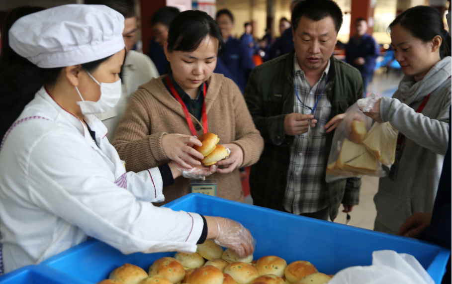 在集團黨委的要求和行政的支持下,通過招聘專業點心師、購置各類設備和原料、規劃計算數量等一系列籌備工作,西點于11月2日正式出爐,果不其然大受歡迎,窗口排起長龍。“我要肉松面包和三角蛋糕!”“你不是減肥嗎?怎么吃那么多?”“好吃啊,吃飽了再減!”嘻嘻哈哈的歡笑聲中,表現出來的是職工內心對食堂午餐的滿意,更是對集團服務員工的肯定和贊許。